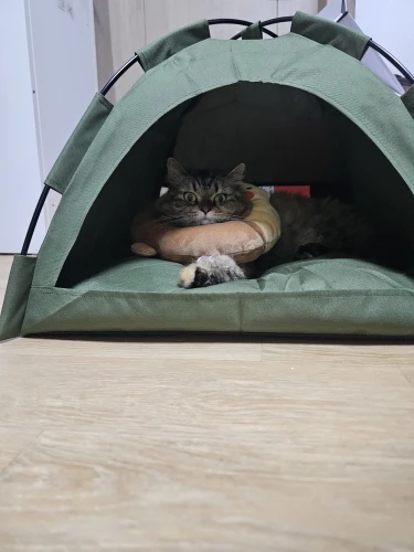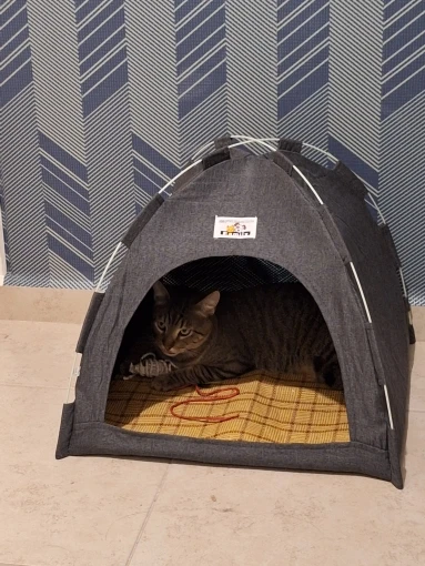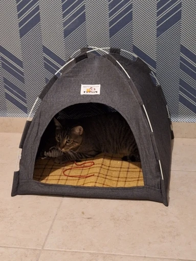 I recommend it a lot, it is super beautiful, the fabric is like a thin denim, it comes assembled, you just have to remove the ties, my cat is big and still it has plenty, the back brings a net so you can look, you just have to see it, he loved it. 100×100